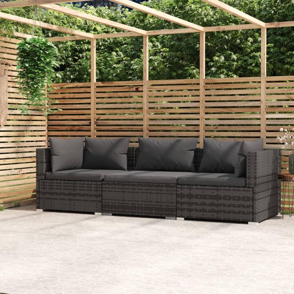 Wicker Patio Furniture 3 Piece with Cushions Gray Poly Rattan