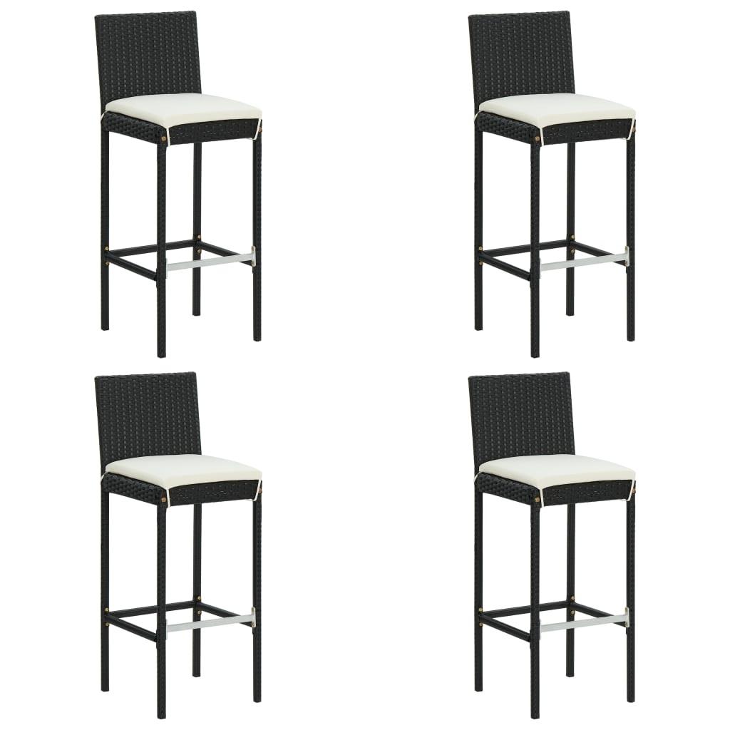 Garden Bar Stools with Cushions 4 pcs Black Poly Rattan
