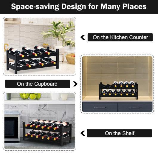 ● Hold up to 12 Bottles: The wine rack can hold up to 12 bottles. The unique design of this wine rack will not tip or topple with 2 different slots in front and behind for the same wine bottle to firmly fit the size. It can not only display multiple bottles but also to meet the aesthetic requirements of the room.