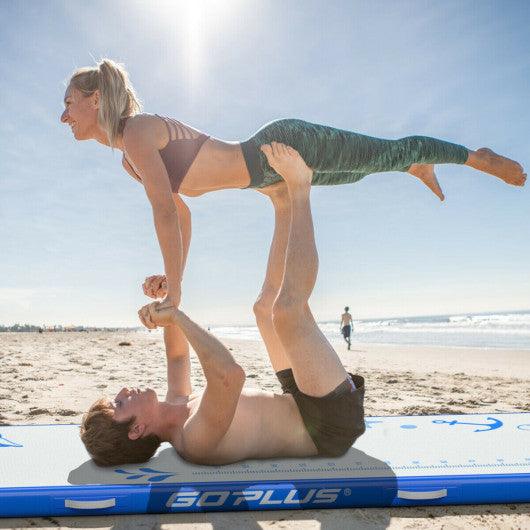 - Multifunctional Mat & Wide Application: This durable inflatable mat is ideal for your healthy workout such as gymnastics cheerleading or tumbling. It can be used in gymnasiums schools or gardens. In addition it's waterproof so it also can be placed on the pool or sea.