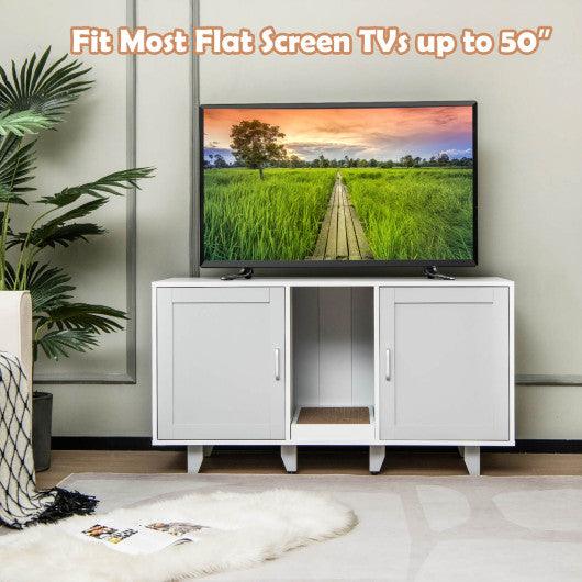 ● 3-in-1 Multipurpose Design: This 2-door cabinet can be used not only as a private cat washroom to hide the mess but also as a cozy cat house or a TV stand in the living room. The spacious tabletop fits most flat screen TVs up to 50" and can place some daily necessities such as ornaments books table lamps etc.