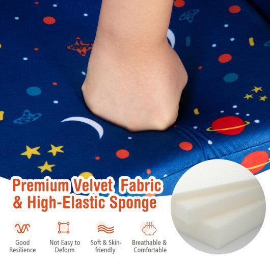 Convertible 2-in-1 design helps kids to convert it into a sofa or a sleeper according to their own needs. They can sit on the sofa to read books watch TV or eat snacks. On the other hand kids can also lie down on the sleeper to have a rest. Besides the velvet surface and high-elastic sponge offer your little ones extra comfort. Solid frame ensures high stability and sturdiness. Ergonomic design helps kids to learn how to sit correctly. Additionally the storage pockets allow kids to keep snacks and books within reach.