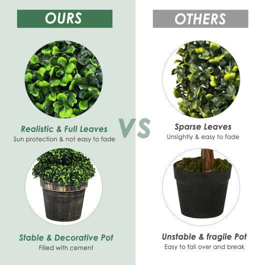 ● Wide Applications: The weather-resistant topiary trees can be used both indoors and outdoors. You can put the 2 faux plants in the corner or use 2 to flank your front door to attract guests' eyes or you can put them in the garden office reception area and workspace looking crisp and sharp. And the light weight makes it easy to move.