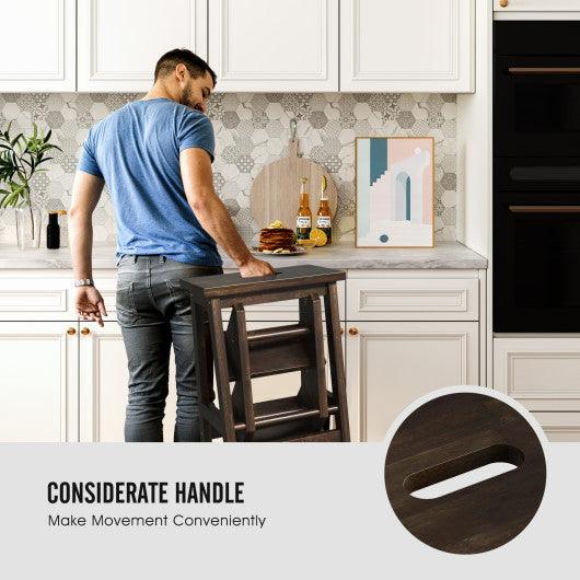 3-in-1 Rubber Wood Step Stool with Convenient Handle-Brown