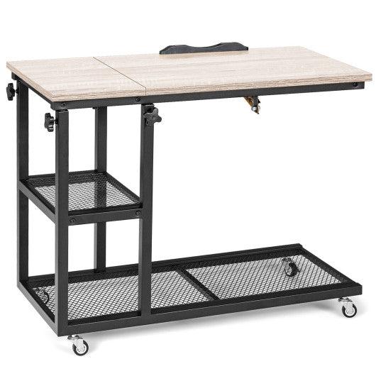 Its construction is made of sturdy steel that greatly improves overall weight capacity up to 88 lbs. The desktop is made of premium material with unique textures and can be adjusted from 6.5° to 32.5°. The bottom 2-tier shelf is made of metal and provides you with great weight capacity. Plus the overall height is adjustable between 25" and 37.5" which helps you find a comfortable height and work healthier. It is worth mentioning that the bedside table is design to be C-shaped. In this way it can better fit the bed and make working in bed come true. The table is also equipped with four 360° swivel wheels including two lockable casters which makes movement more effortless.
