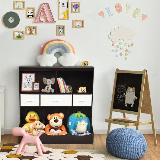 Shelves can be used to store books magazines DVDS video games etc. Drawers can be used to hold children's gloves clothing and accessories. The bottom three bins are ideal for sorting items such as craft supplies dolls and other toys. Also the top surface provides an extra place for a photo frame or souvenir.This cabinet is made of healthy and environmentally friendly materials so you don't have to worry about the negative impact on your health. It's a great way to stimulate children's interest and help them learn to sort.