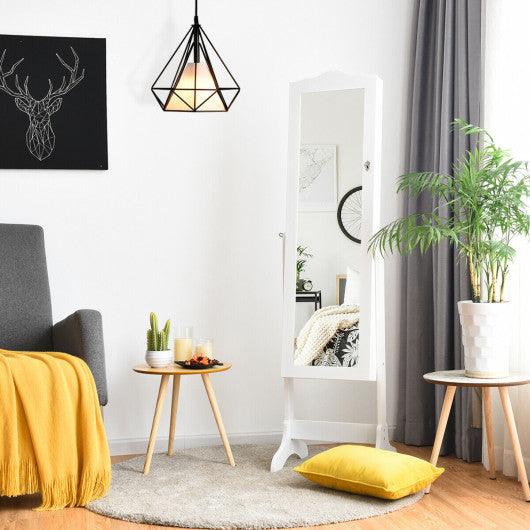 It is specially designed for all your valuables helps your jewelry in an organized manner and prevents them from getting tangled and keeps your jewelry safe and away from kids. Full size mirror is convenient for you to try your clothes or jewelry on and because of the 4 angle tilting design you can choose your favorite angle for a better view. In addition its chic and stylish design fits with your bedroom decor. With it your life will be convenient and self-consistent.