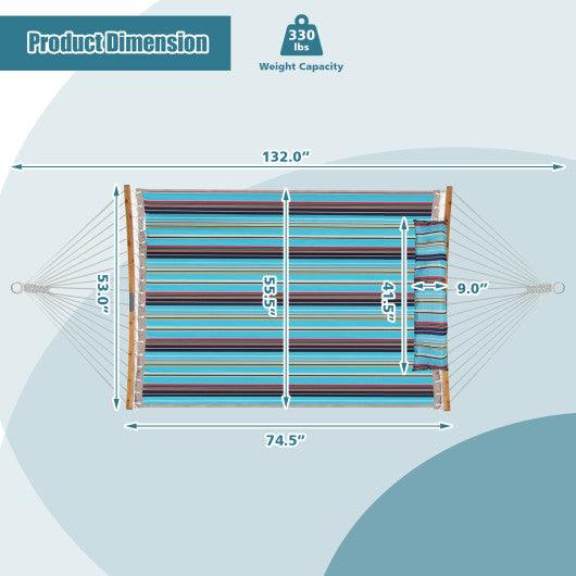 ● Durable Material for Long Use: The material used for this double hammock and hand-woven ropes is quality polyester which is fade-resistant and durable. And the hand-woven ropes make this outdoor hammock sturdy while lying. In addition the stainless steel connector of spreader bars ensures long-term use.