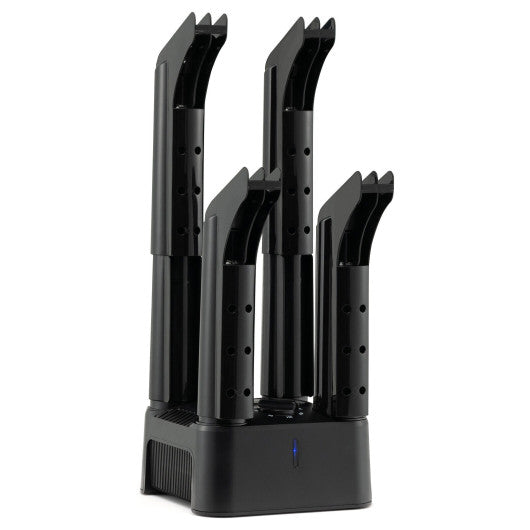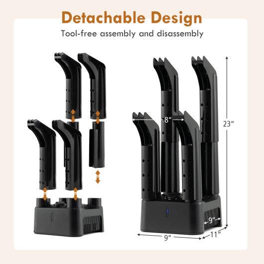 With high-performance heat blower the shoe dryer will dry your shoes in hours. The time-selection knob allows you to choose the suitable operating time according to different kinds of shoes. Moreover the patented drying tube is integrated and anti-blocking. And the shoe dryer is designed with overheat and over-current protection for high safety. Plus the dryer operates with low noise which won't disturb your sleep or relaxation. The 4-tube design makes the dryer ideal for 4 shoes to dry at the same time. And you can also use the dryer to dry other items like socks hats gloves and so on. The detachable design makes the shoe dryer easy to put together or disassemble bringing much convenience to you.