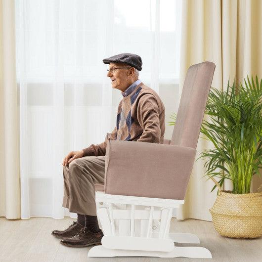 Made of solid wooden frame this rocking chair and ottoman set ensures strong stability and durability. High-density sponge upholstery and soft fabric provide great comfort and skin-friendly touch. The ergonomic back armrests and ottoman can make you feel extremely comfortable when you lean on it. And equipped with smooth zipper the seat cushion cover is easy to remove and clean. This multipurpose gilder can be used for working reading watching TV and napping. It can also be used as a rocking chair for nursing babies. With the premium ball bearings this glider offers a smooth gliding motion to gently rock you and your little one to relax.